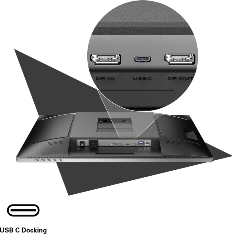 Vereenvoudig de verbindingen met slechts één kabel. De USB-C-verbinding biedt DisplayPort Alternate Mode voor het overbrengen van videosignalen met hoge resolutie van een notebook naar de monitor, terwijl tegelijkertijd de acu van de notebook wordt opgeladen vanaf de monitor met USB-stroomvoorziening.