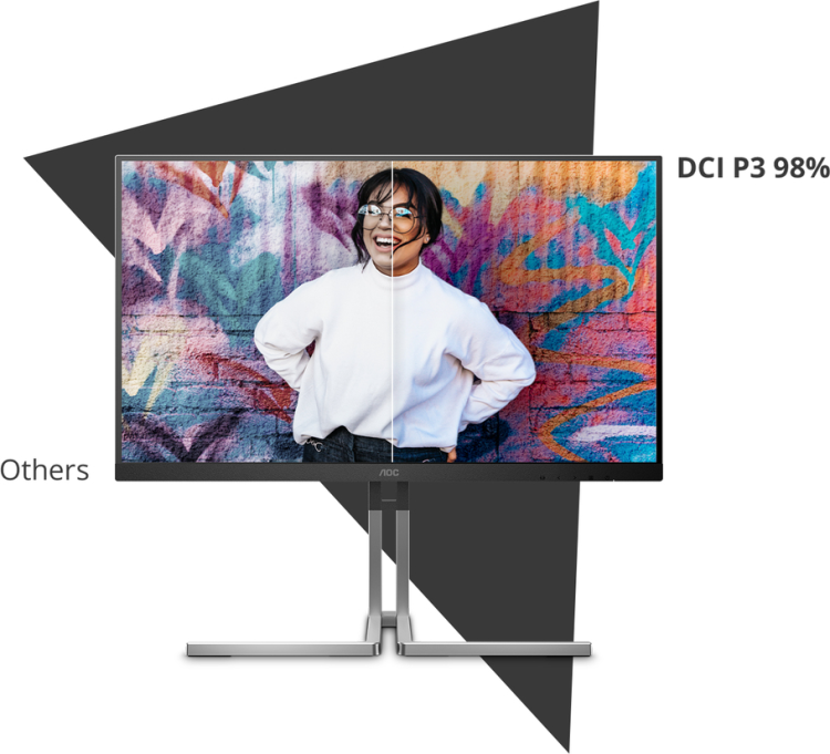 De AOC Graphic Pro lijn biedt 98% DCI-P3, 100% sRGB en 100% Rec. 709 dekking - perfect voor ontwerpers die levensechte kleuren en uitzonderlijke nauwkeurigheid eisen in elk project.