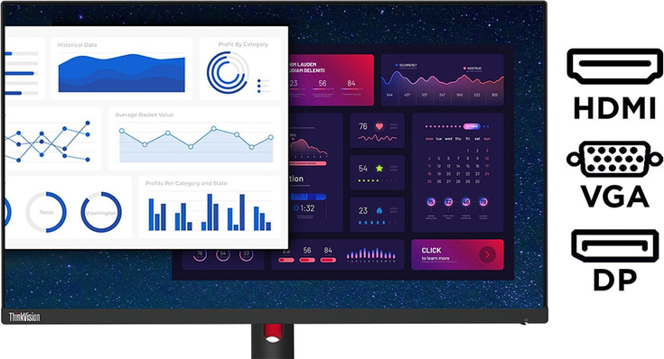 Met het ThinkVision T27i-30-beeldscherm zie je alles. De vele connectiviteitsopties van VGA en HDMI 1.4-poorten tot DP 1.2-poorten garanderen dat je altijd klaar bent om aan te sluiten en te presteren.