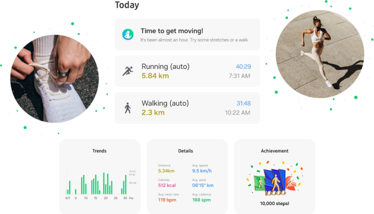 Simply place it on your finger and Galaxy Ring will take care of the rest. Galaxy Ring auto-tracks your walks and runs without having to press any start buttons. Check calories burned and other stats on the Samsung Health app to keep track of your progress.